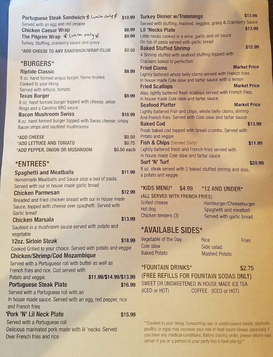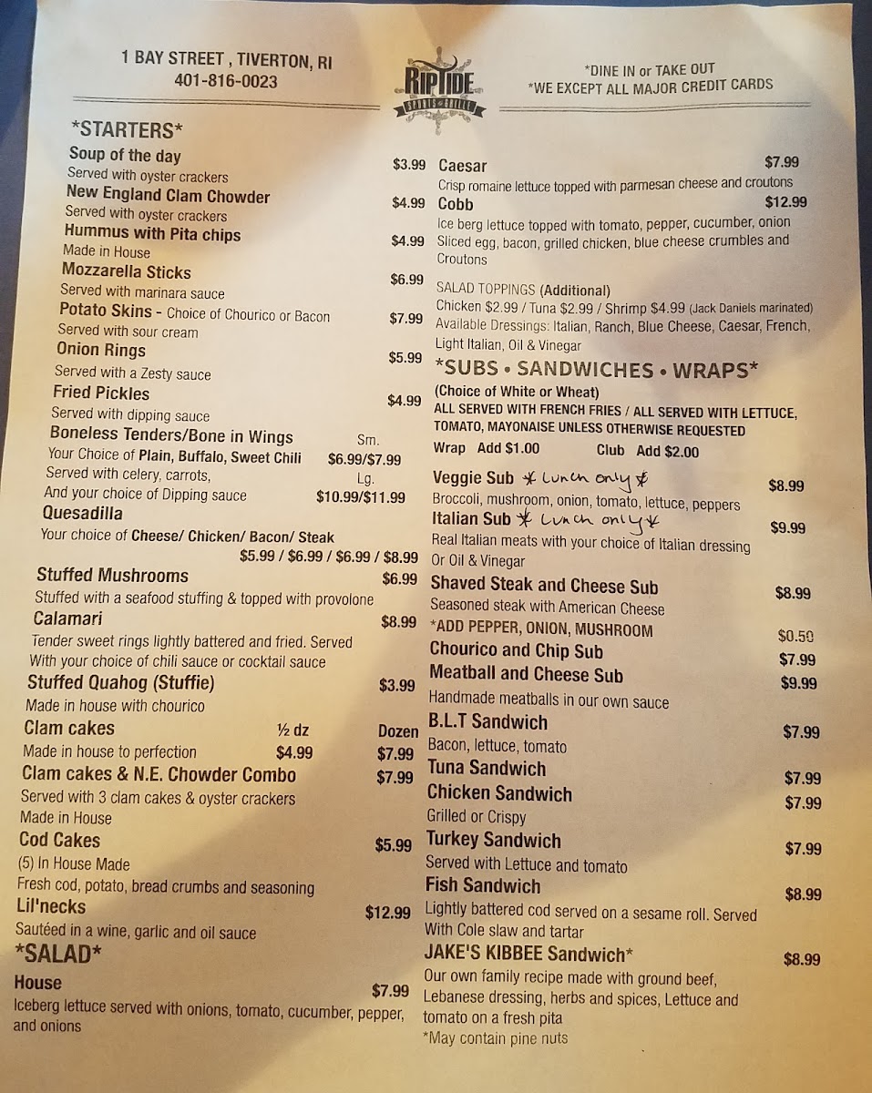 Nestled in Tiverton, RI, RipTide Sports Grille is a local gem that embodies the spirit of coastal dining. The menu features a delightful range of seafood and classic American comfort food that caters to every palate.